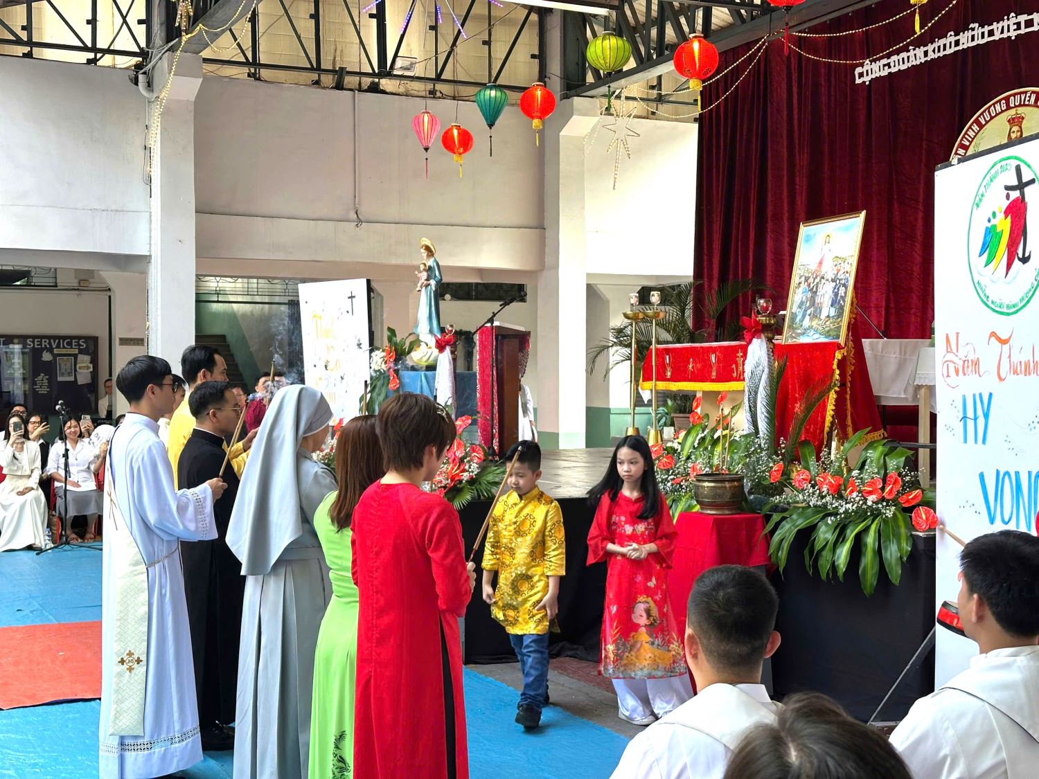 Trước khi Thánh lễ bắt đầu, nghi thức “Dâng hương tưởng nhớ” đã được cử hành, bày tỏ lòng tri ân và kính nhớ sâu sắc đến Các Thánh Tử Đạo Việt Nam, những vị đã gieo hạt giống đức tin anh dũng trên quê hương. Tiếp đó, phần diễn nguyện do các Sơ Dòng Đức Mẹ Sầu Bi (Philippines) thực hiện, đã tái hiện sinh động và ý nghĩa truyền thống đức tin kiên cường của các bậc tiền nhân.