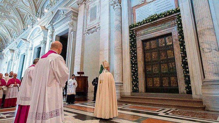 Theo thực hành toàn xá của Do Thái, những lời của ngôn sứ Isaia, được Chúa Giêsu đề cập đến chính Người trong diễn từ khai mạc sứ vụ Mêsia trong hội đường Nazareth: “Thần Khí Chúa ngự trên tôi, vì Chúa đã xức dầu tấn phong tôi, để tôi loan báo Tin Mừng cho kẻ nghèo hèn. Người đã sai tôi đi công bố cho kẻ bị giam cầm biết họ được tha, cho người mù biết họ được sáng mắt, trả lại tự do cho người bị áp bức, công bố một năm hồng ân của Chúa” (Lc 4, 18). Với cử chỉ này và từ cánh cửa đó, Đức Thánh Cha và toàn thể Giáo hội không chỉ bước vào một không gian được nhìn nhận là thánh thiêng, nhưng còn là một thời gian thánh, một “năm ân sủng”.
