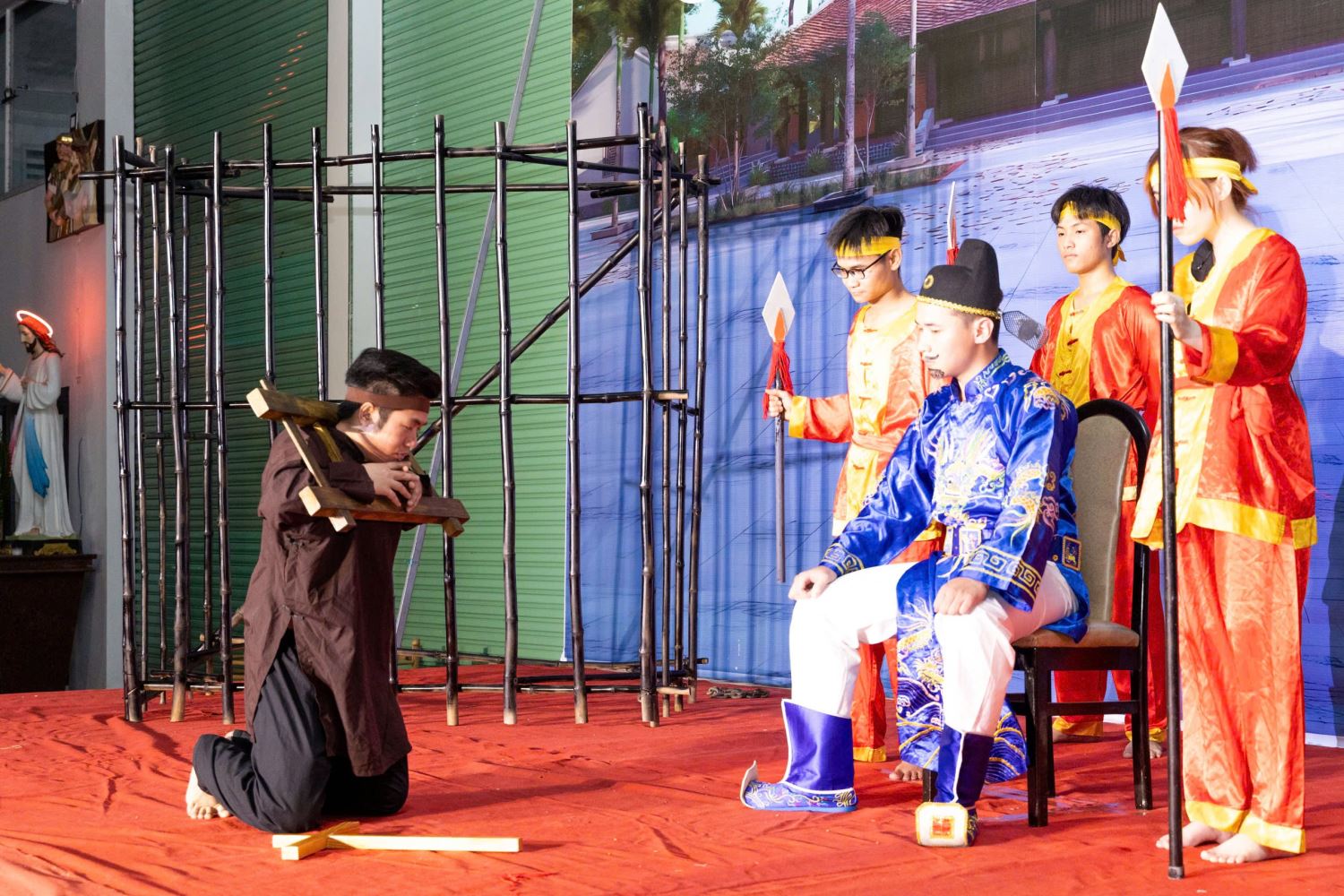 Sau phần chia sẻ, chương trình chính thức bắt đầu với tiểu phẩm “Cuộc đời Thánh Tôma Nguyễn Văn Đệ”, được tái hiện sinh động qua phần trình diễn của giới trẻ giáo xứ, đưa người xem trở lại bối cảnh lịch sử đầy thử thách của Giáo hội Việt Nam.