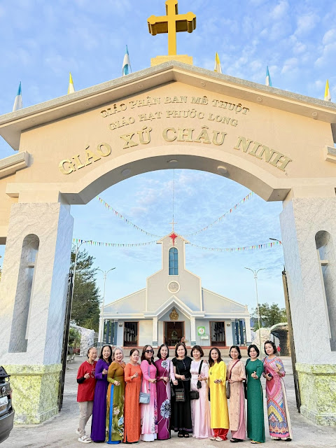 Sáng sớm lúc 5g, đoàn 'Hoa Yêu Thương' tham dự thánh lễ Chúa Nhật III Mùa Vọng tại ngôi thánh đường giáo xứ Châu Ninh.
