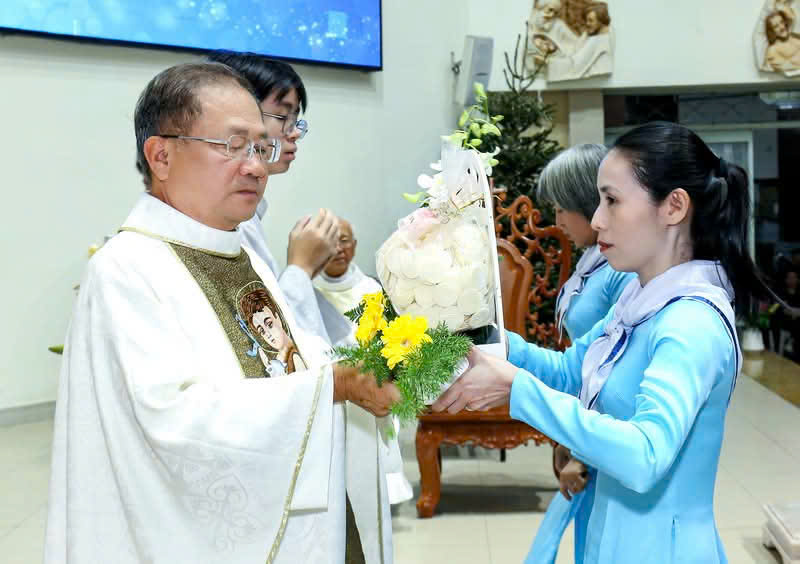 Sau đó, nghi thức Tận hiến của một hội viên Con Đức Mẹ - chị Maria Martine Hoàng Thị Thanh Hương - được cử hành trang trọng, thêm niềm vui cho ngày lễ.