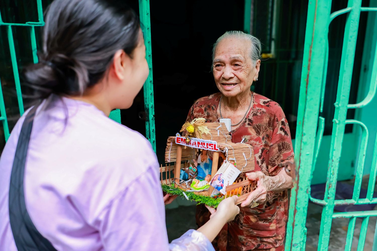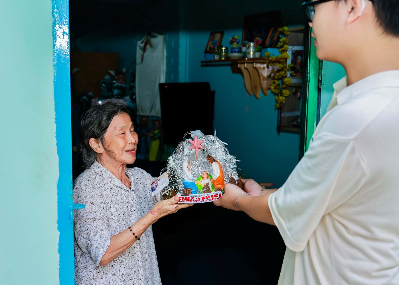 Từ sáng sớm, các anh chị HT-GLV đã hoá thân thành những "shipper” với nụ cười rạng rỡ và tinh thần hăng hái đã lên đường cùng với Sr Maria Lưu Kim Xuân, Dòng Mến Thánh Giá Chợ Quán lặng lẽ đến thăm các ông bà tân tòng cao tuổi, bệnh tật trong Họ Đạo - họ là những con người đang từng bước tìm về với Chúa dưới sự hướng dẫn đầy yêu thương và kiên nhẫn từ Sr Maria. Khi trao tận tay từng hang đá nhỏ, được nhìn thấy ánh mắt các cụ sáng lên, những nụ cười hạnh phúc nở rộ trên môi, chứng kiến các cụ nâng niu món quà trong đôi tay run run, rồi cẩn thận đặt hang đá ở nơi trang trọng nhất trong nhà. Đó là khoảnh khắc “Ánh Sáng Giáng Sinh” thực sự chạm đến tâm hồn - như thể Chúa Hài Đồng đã thực sự giáng sinh ngay trong những ngôi nhà ấy, mang theo hơi ấm và ánh sáng xua tan bao cô đơn, đau khổ, thiếu thốn.
