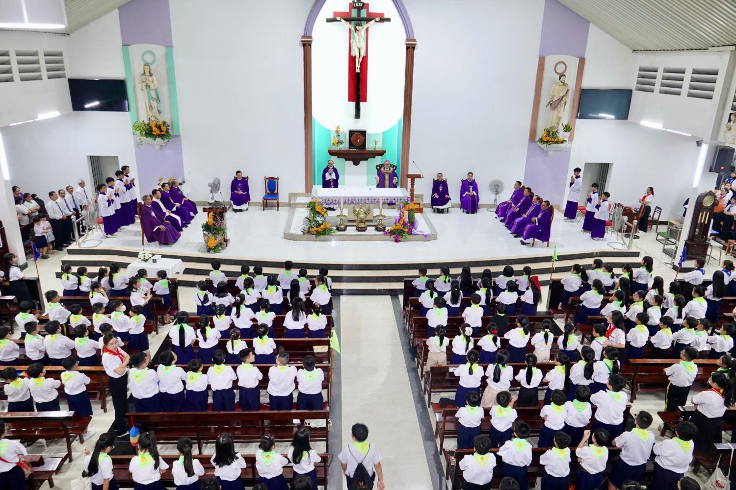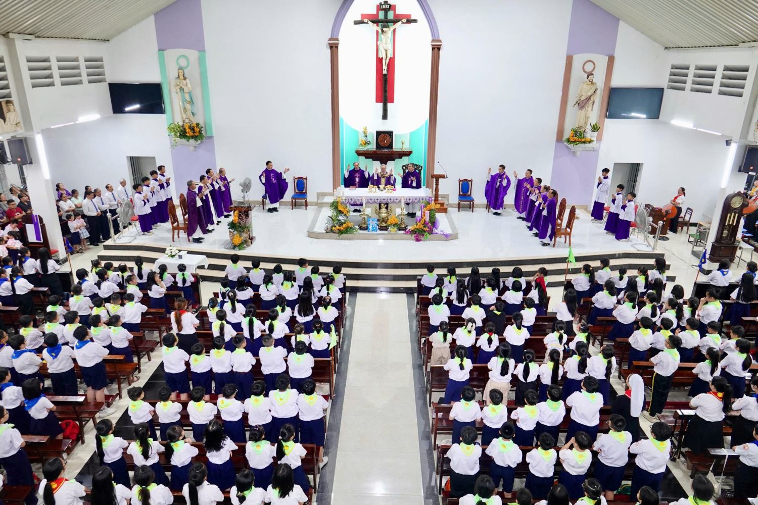 Thánh lễ khởi sự với đoàn rước từ cuối nhà thờ tiến lên cung thánh.