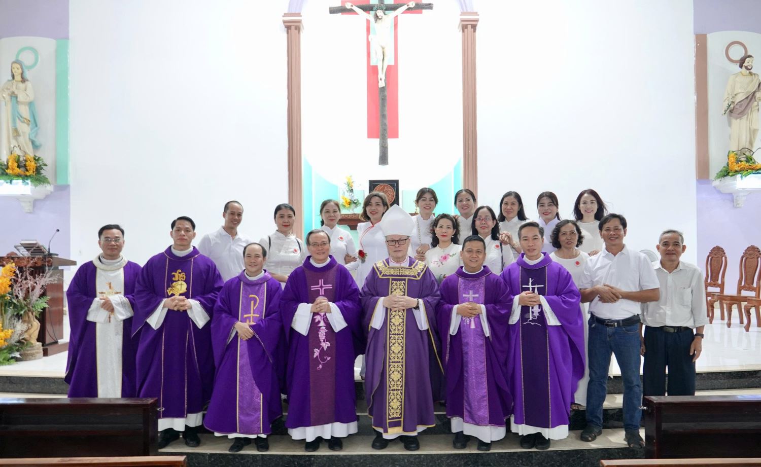 Thánh lễ kết thúc lúc 19g10 cùng ngày. Niềm vui được lưu giữ qua những tấm hình kỷ niệm chụp chung trước cung thánh và bữa cơm thân mật tại nhà xứ.