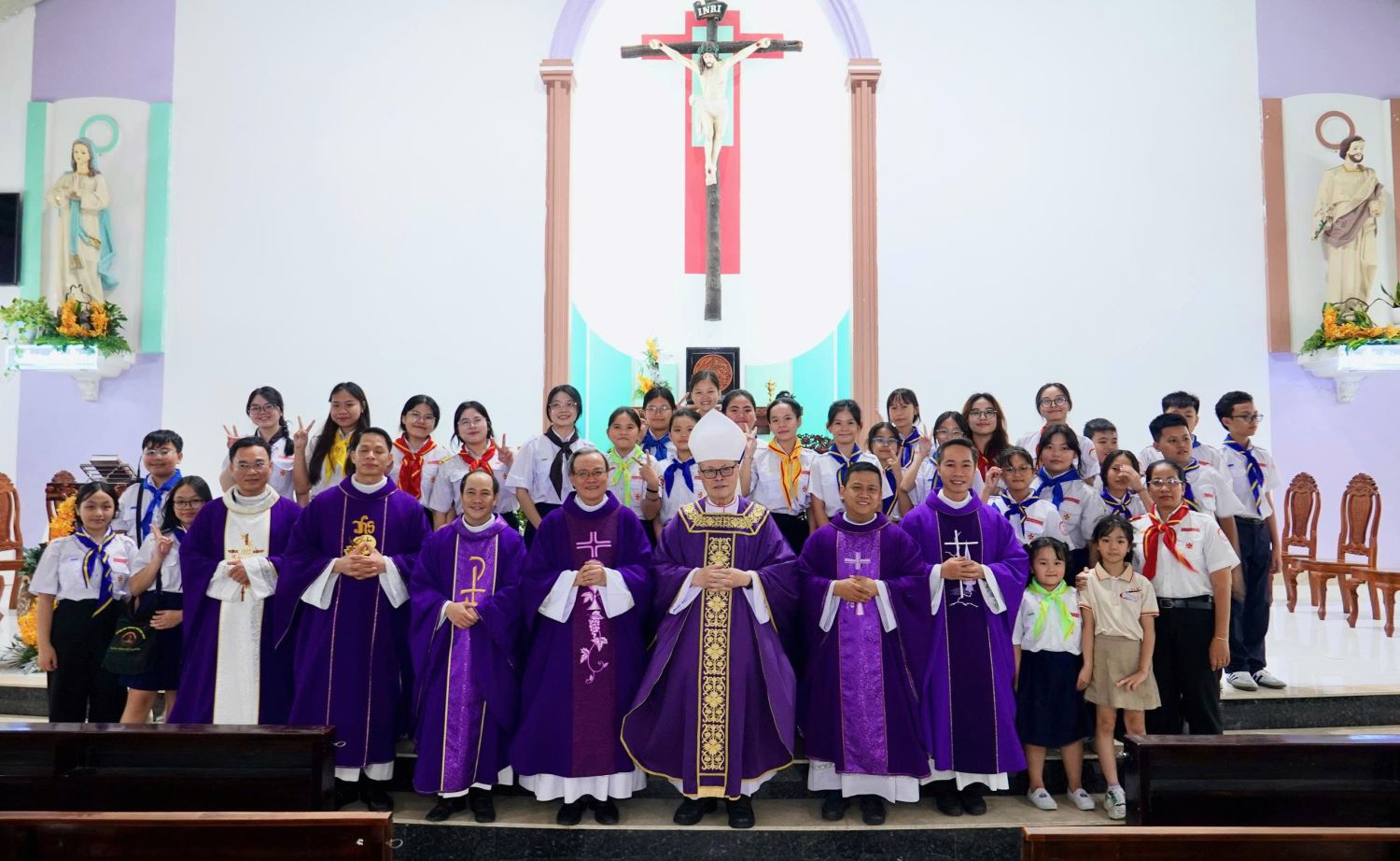 Đồng tế với ngài có linh mục chánh xứ Giuse Hồ Thứ, hai linh mục phó xứ: Giuse Nguyễn Thành Công và GioaKim Đỗ Bá Thái, các linh mục dòng Ngôi Lời và các linh mục từ Đại Chủng viện Huế, cùng đông đảo các em thiếu nhi ngồi chật kín khuôn viên nhà thờ. Đây là chuyến thăm đầu tiên của Ngài tại giáo xứ.