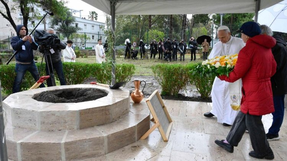 Sau đó, Đức Giáo hoàng tiến đến đặt vòng hoa và dừng lại cầu nguyện trong giây lát giữa những phiến đá cổ trên mảnh đất từng được vị cha thiêng liêng của ngài bước đi. Ngài tiếp tục trồng một cây ô liu và lắng nghe ca đoàn của Học viện Âm nhạc Annaba trình bày các bài hát dựa trên các bản văn của thánh Augustinô về hòa bình và tình huynh đệ.