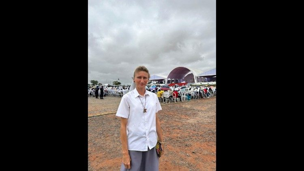 Nữ tu Krystyna Zachwieja, FMM, tại Thánh lễ của Đức Giáo hoàng ở Kilamba