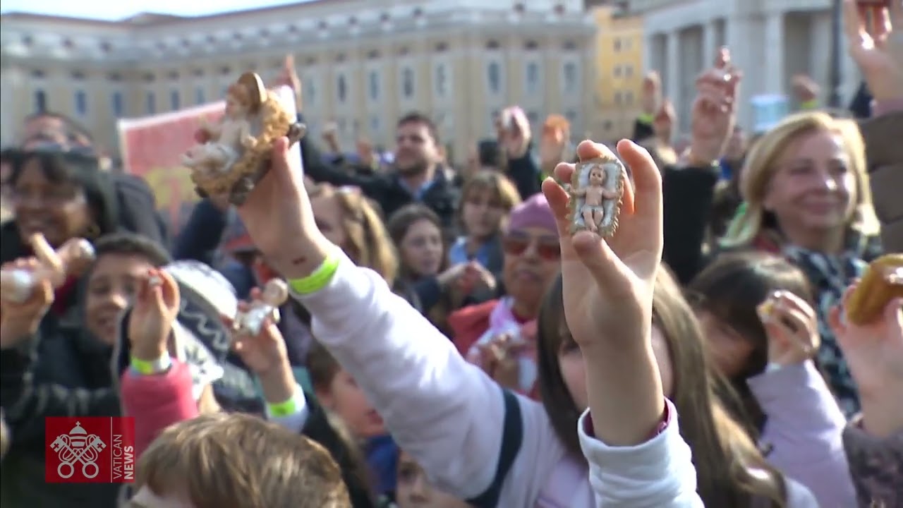 Sau Kinh Truyền Tin trưa Chúa Nhật 11/12, Đức Thánh Cha đã làm phép các tượng Chúa Hài Đồng do các trẻ em mang đến theo truyền thống vào Chúa Nhật III Mùa Vọng.