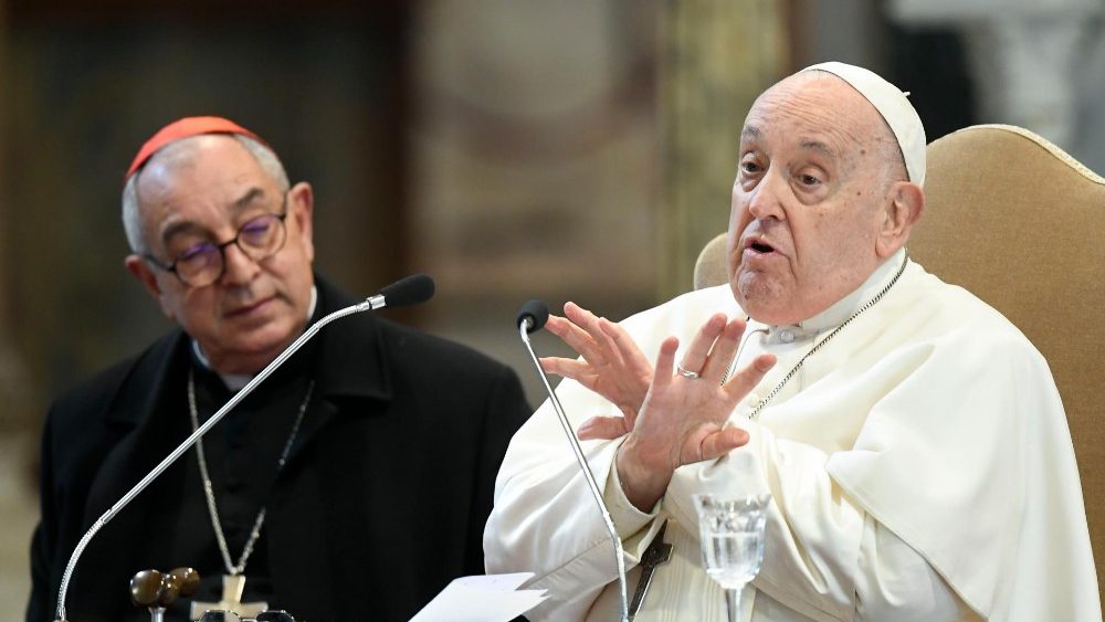 Vatican News (13.1.2024) – Một “xứ truyền giáo”. Đây là cách Đức Thánh Cha Phanxicô định nghĩa giáo phận Rôma trong cuộc gặp gỡ kín theo truyền thống, với hàng giáo sĩ Rôma được tổ chức vào ngày 13/1/2024 tại Vương cung thánh đường Thánh Gioan Latêranô. Đức Giáo Hoàng đến sau 9 giờ sáng và được Đức Hồng y Vicar Angelo De Donatis chào đón. Tại đây, ngài tuyên bố: chúc lành cho con người, chứ không chúc lành cho tội lỗi.