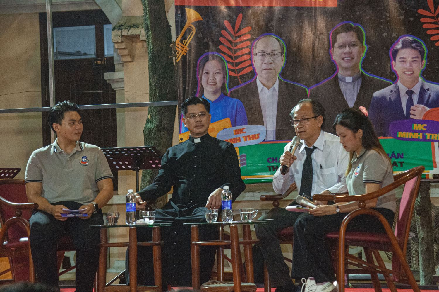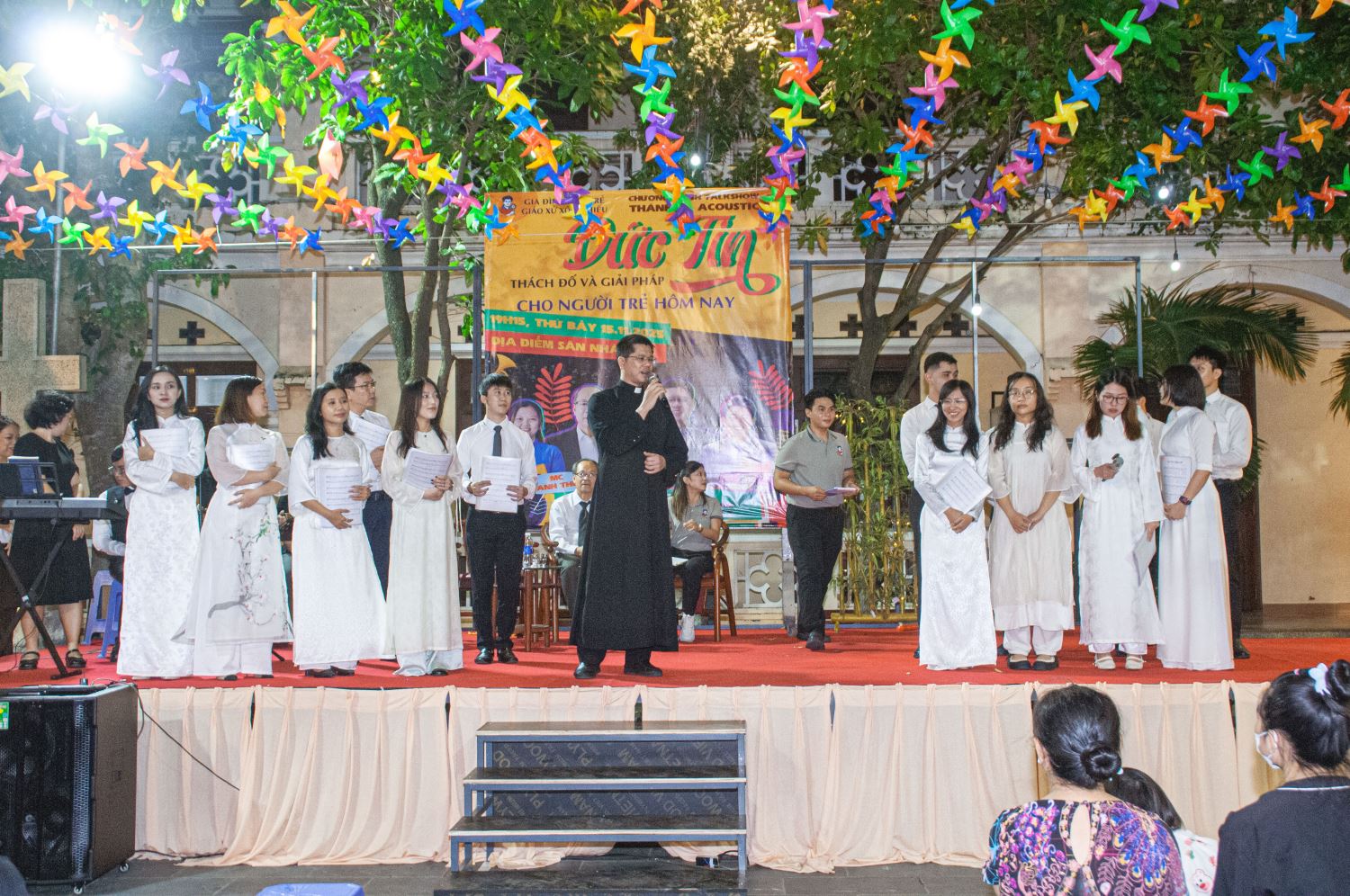 Cha Vinh Sơn Mai Minh Tuấn tập trung vào bản chất của đức tin, ví von đức tin như một bước nhảy. Ánh đèn vàng ấm chiếu xuống sân nhà thờ, các bạn trẻ chăm chú lắng nghe. Cha mời gọi phó thác vào vòng tay Thiên Chúa, dù mắt thường chưa thấy nhưng có thể cảm nhận bằng kinh nghiệm, tình yêu và những giây phút bình an mà thế giới không thể ban tặng.