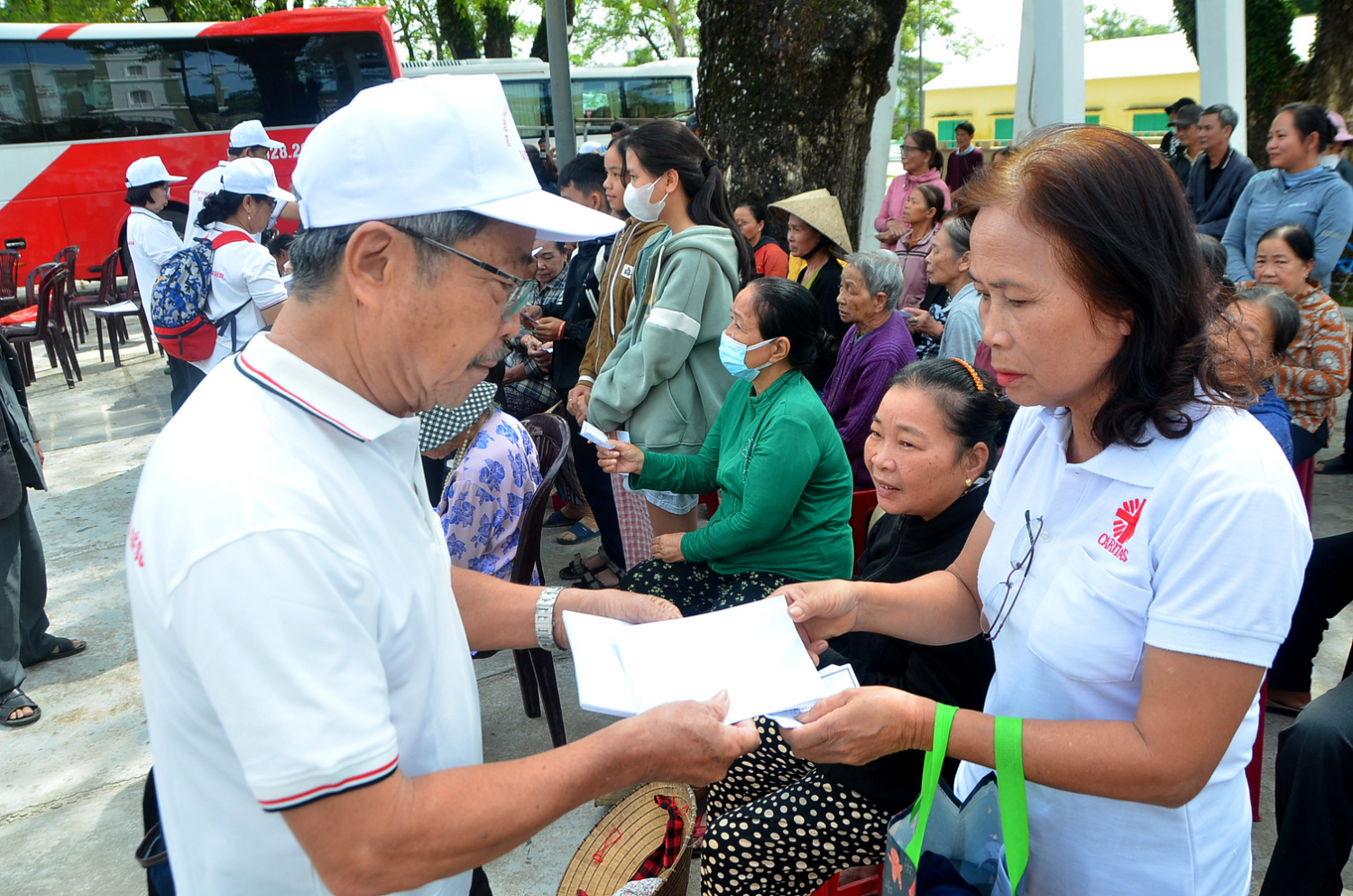 Sau đó, đoàn dùng bữa cơm trưa tại Dòng Mến Thánh Giá Trà Kiệu. Tiếp đó, đoàn đi tới giáo xứ Hương Phú - Nam Đông. Tại đây, đoàn trao 55 phần quà cho các đoàn viên và các hộ gia đình có hoàn cảnh khó khăn trong giáo xứ.