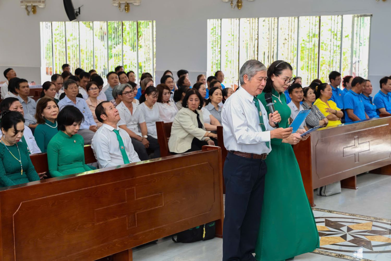 Ngay từ 7g30 sáng, Ban Tổ chức đã hiện diện trước sân thánh đường để đón tiếp các linh mục, quý chức và các Song Nguyền. Sau những phút gặp gỡ thân tình đầu năm, mọi người cùng tiến vào nhà thờ tham dự giờ sinh hoạt do Linh mục Tân Tổng Linh Nguyền chủ trì.