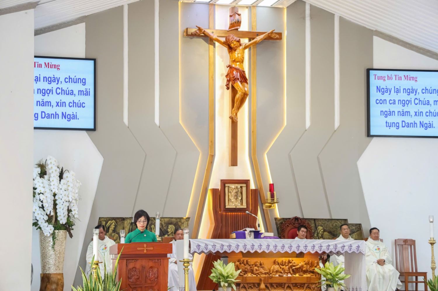 Cha chủ sự đọc đoạn Tin Mừng theo Thánh Matthêu (Mt 4,1-11) nói về việc Chúa Giêsu chịu cám dỗ trong hoang địa.