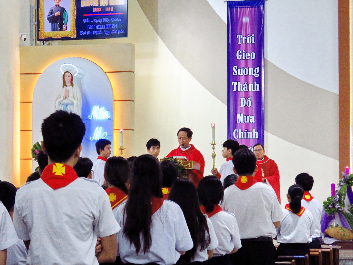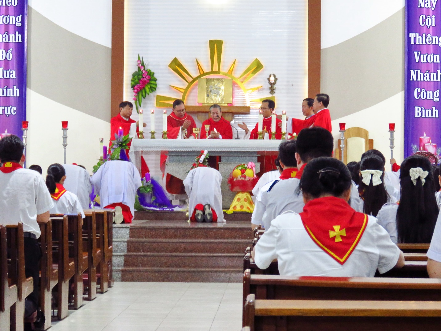 Thánh lễ do Lm Phêrô Nguyễn Ngọc Châu - chánh xứ Thánh Tịnh chủ tế. Đồng tế với ngài có Lm Giuse Maria Lương Đức Nguyện - chánh xứ Bình Lợi, Lm Martino Trịnh Quang Khải - Tuyên úy Hiệp đoàn, các Lm Tuyên úy xứ đoàn: Giuse Martino Hồ Quốc Vinh - GX Thị Nghè; Lm Giuse Lê Hoàng Tuấn - GX Gia Định, Lm Gioan Phạm Văn Thanh - GX Thánh Nguyễn Duy Khang.
