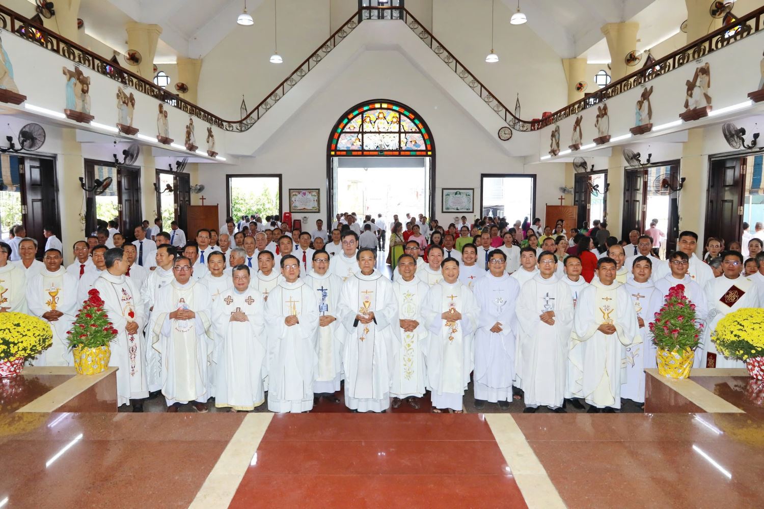 Đồng tế với ngài có gần 40 linh mục chánh xứ và phó xứ trong giáo hạt. Thầy phó tế phục vụ bàn thánh, cùng với sự tham dự của các tu sĩ nam nữ, các thành viên Hội đồng Mục vụ và đại diện các hội đoàn của hai mươi giáo xứ trong hạt Hóc Môn.