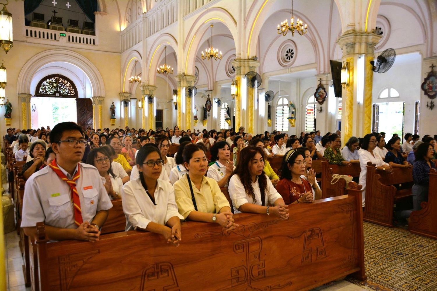 Trong tâm tình sốt mến của tuần đầu tháng Mân Côi, mọi người chiêm ngắm mầu nhiệm 5 Sự Vui, cùng lần chuỗi Mân Côi để dọn tâm hồn bước vào Thánh lễ.