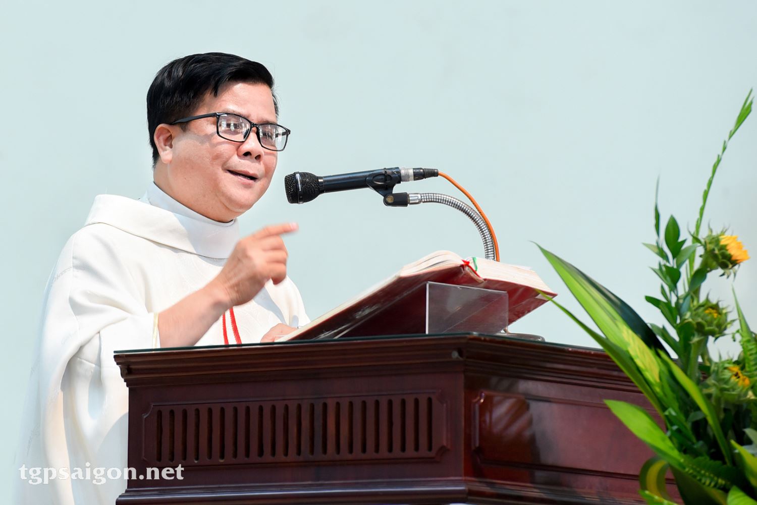 Trong phần giảng lễ, Lm Đa minh Nguyễn Văn Minh, dựa trên trang Tin mừng Mt 6, 25-34 vừa công bố để diễn giảng cho cộng đoàn: