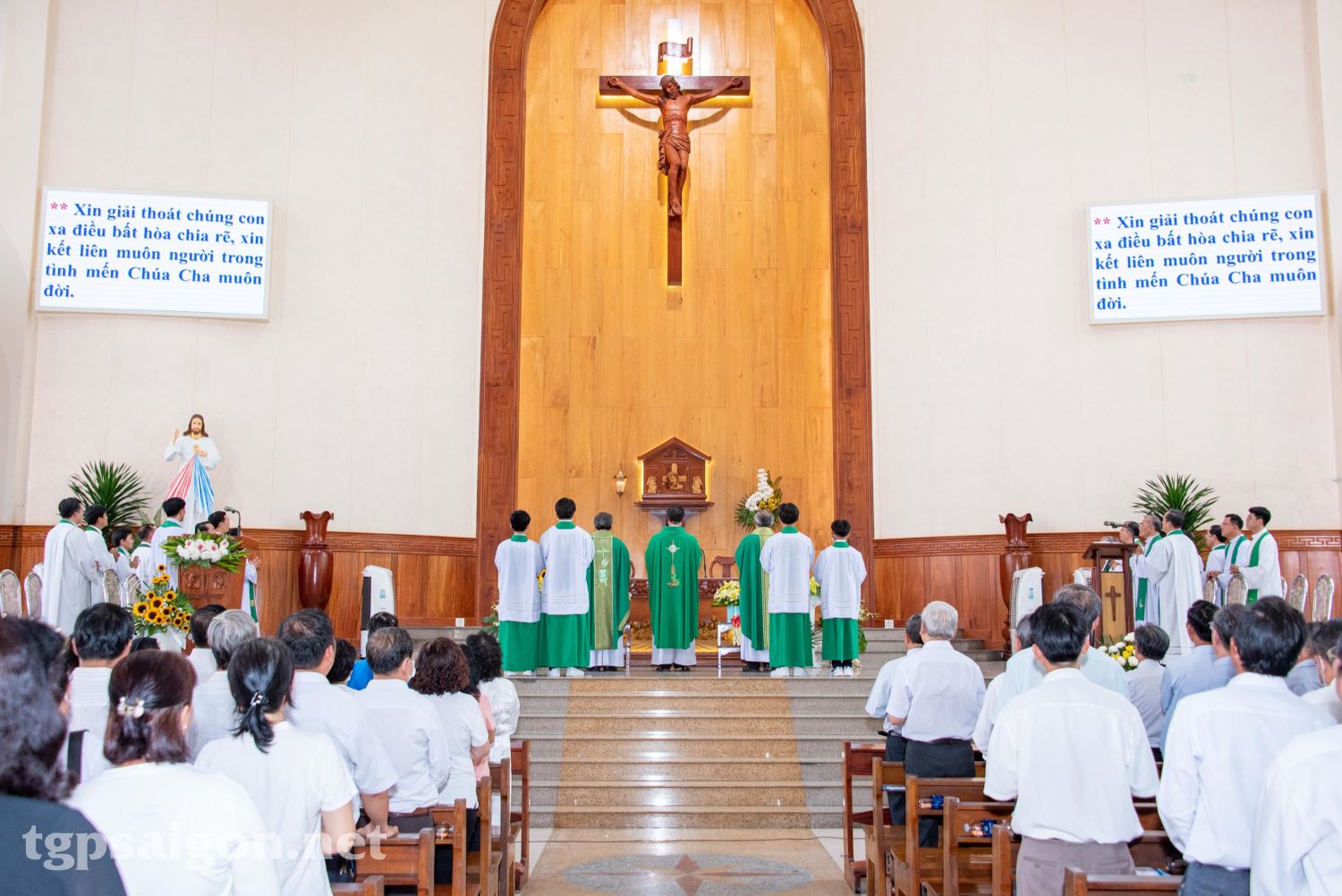 Thánh lễ tạ ơn do Lm Hạt phó Giuse Lê Hoàng chủ tế. Đồng tế với ngài có Lm chánh xứ Thiên Ân Phêrô Nguyễn Văn Tâm, Lm Phêrô Nguyễn Văn Hiền và 16 Lm trong Giáo hạt.