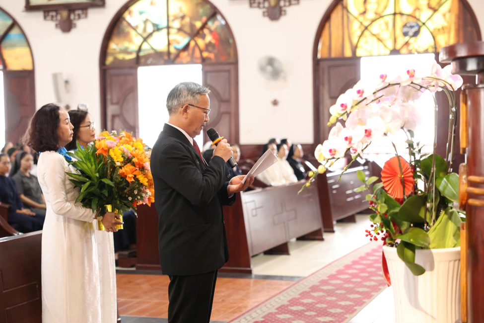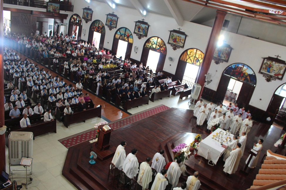 Hiệp dâng Thánh lễ có các nữ tu đại diện nhiều Hội Dòng, đông đảo các thành viên Hội đồng Mục vụ, các hội đoàn và giáo dân thuộc 17 giáo xứ trong giáo hạt Thủ Thiêm.