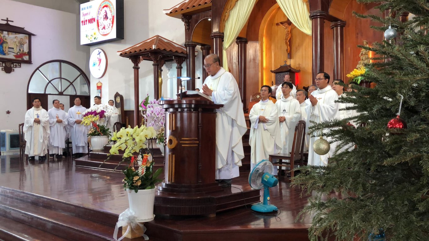Sau lời nguyện hiệp lễ, vị đại diện HĐMV giáo hạt đã gởi lời cảm ơn đến Cha quản Hạt, quý linh mục Chánh xứ và Phó xứ, đã tín nhiệm chọn và giúp quý chức trưởng thành hơn, phục vụ tốt đẹp hơn trong tâm tình tạ ơn Chúa nhân dịp cuối năm. Ông cũng cảm ơn quý ông bà cố, quý anh chị phục vụ ca đoàn, lễ sinh đã giúp cho Thánh lễ được diễn ra trang trọng.