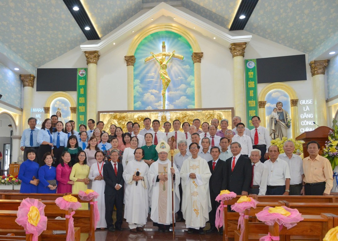 Sau thánh lễ các vị đại diện giáo hạt Xóm Mới chụp hình kỷ niệm với ĐGM và các linh mục đồng tế.