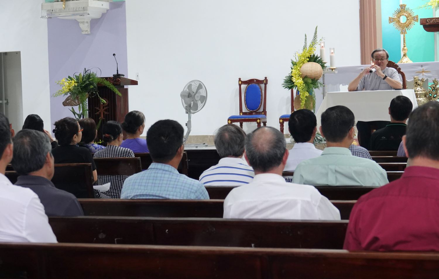 TGPSG -- Vào lúc 19g30 ngày 21.11.2025, cộng đoàn dân Chúa Giáo khu 5 giáo xứ Nhân Hòa tập trung trong ngôi thánh đường để tham dự buổi tĩnh tâm, Chầu Thánh Thể và Lãnh nhận Bí tích Hoà Giải để chuẩn bị mừng Bổn mạng: các Thánh Tử Đạo Việt Nam. Buổi tĩnh tâm do linh mục (Lm) Chánh xứ Giuse Hồ Thứ hướng dẫn với chủ đề: “Cùng nhau sống tử đạo hằng ngày”, đây là dịp quý báu để bà con giáo dân trong giáo khu 5 lắng đọng tâm hồn, được mời gọi dừng lại, lắng nghe, và để Lời Chúa chạm đến từng nhịp đập của trái tim mỗi người tín hữu.