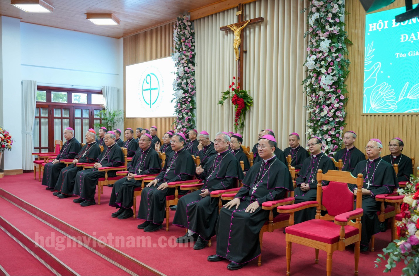 Nhắc lại hành trình chuẩn bị, ngài cho biết Giáo phận từng mong muốn được đón tiếp Hội đồng Giám mục từ nhiều năm trước, và nay niềm mong đợi ấy đã trở thành hiện thực. Cha Tổng đại diện cũng giới thiệu khái quát về đời sống đức tin sinh động của Giáo phận Đà Lạt: gần 430.000 tín hữu, trong đó có hơn 169.000 người dân tộc thiểu số, với 7 giáo hạt, 139 giáo xứ, 211 linh mục giáo phận, 237 linh mục dòng và hơn 1.800 tu sĩ nam nữ; toàn Giáo phận đang sống hiệp nhất và bình an.