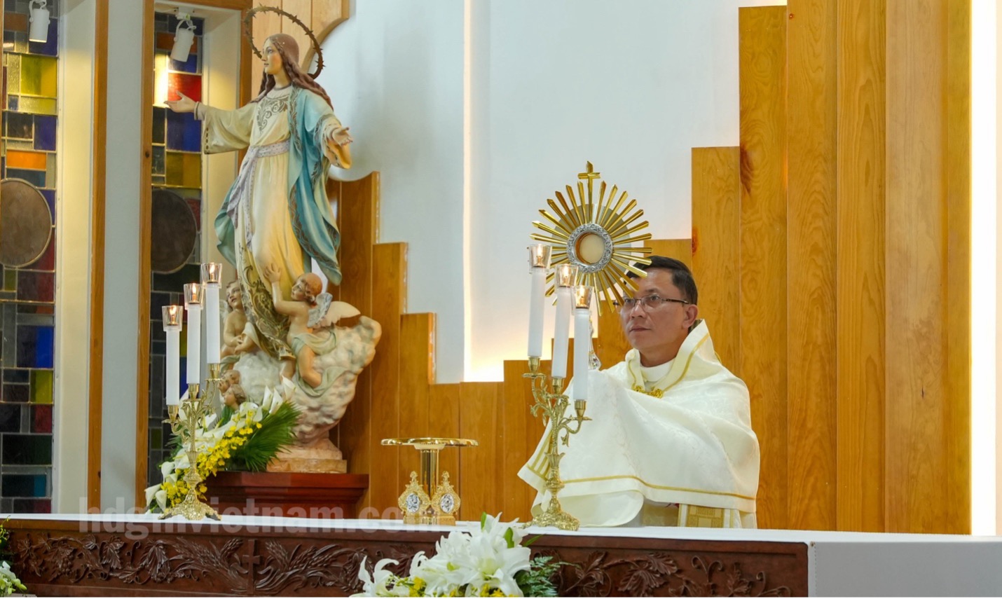 Chương trình chào mừng khép lại trong bầu khí linh thiêng và hân hoan. Ca đoàn và cộng đoàn cùng cất cao bài hát thánh ca “Kính Mẹ Mân Côi”, như lời tạ ơn dâng lên Thiên Chúa và Mẹ Maria.