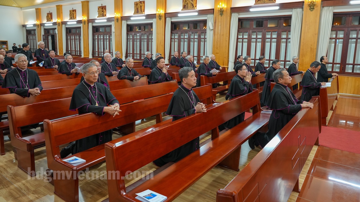 Đức Tổng Giám mục Giuse Nguyễn Năng ban phép lành, cầu xin Chúa Thánh Thần soi sáng và đồng hành với các Đức Giám mục trong những ngày Đại hội, để mọi quyết định mục vụ mang lại hoa trái tốt đẹp cho Hội Thánh Việt Nam, trong tinh thần hiệp thông – tham gia – sứ vụ.