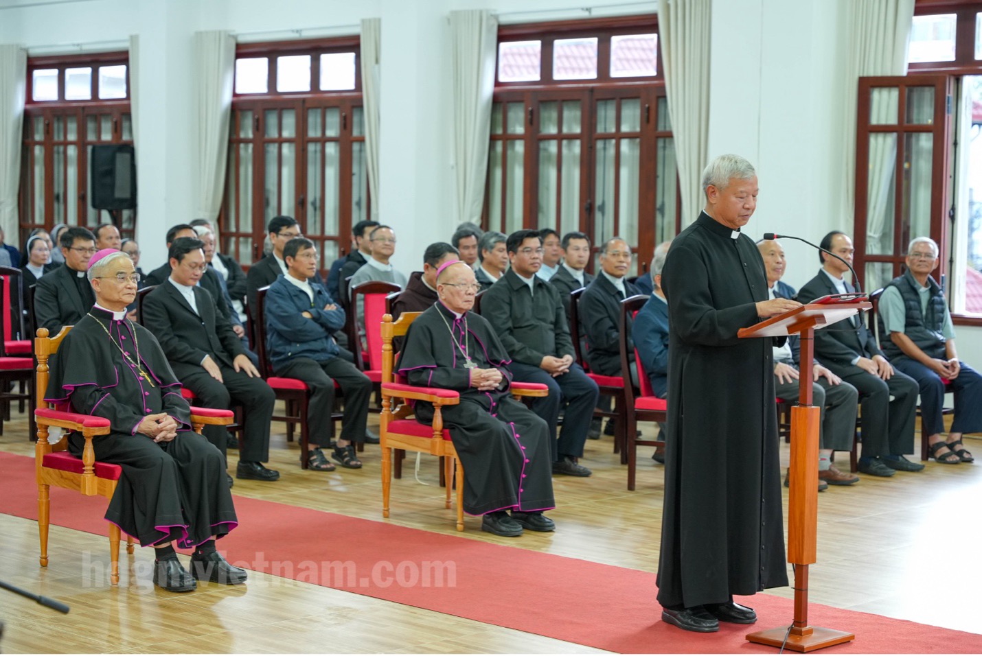 Trong lời phát biểu khai mạc, Linh mục Gioan Bosco Hoàng Văn Chính - Tổng Đại diện kiêm Chưởng ấn Giáo phận Đà Lạt - đã thay mặt toàn thể Dân Chúa dâng lời chào mừng “Đức Hồng y Phêrô Nguyễn Văn Nhơn, Đức Tổng Giám mục Chủ tịch Hội đồng Giám mục Việt Nam (HĐGMVN), quý Đức Tổng, quý Giám mục, cùng quý linh mục thư ký”.