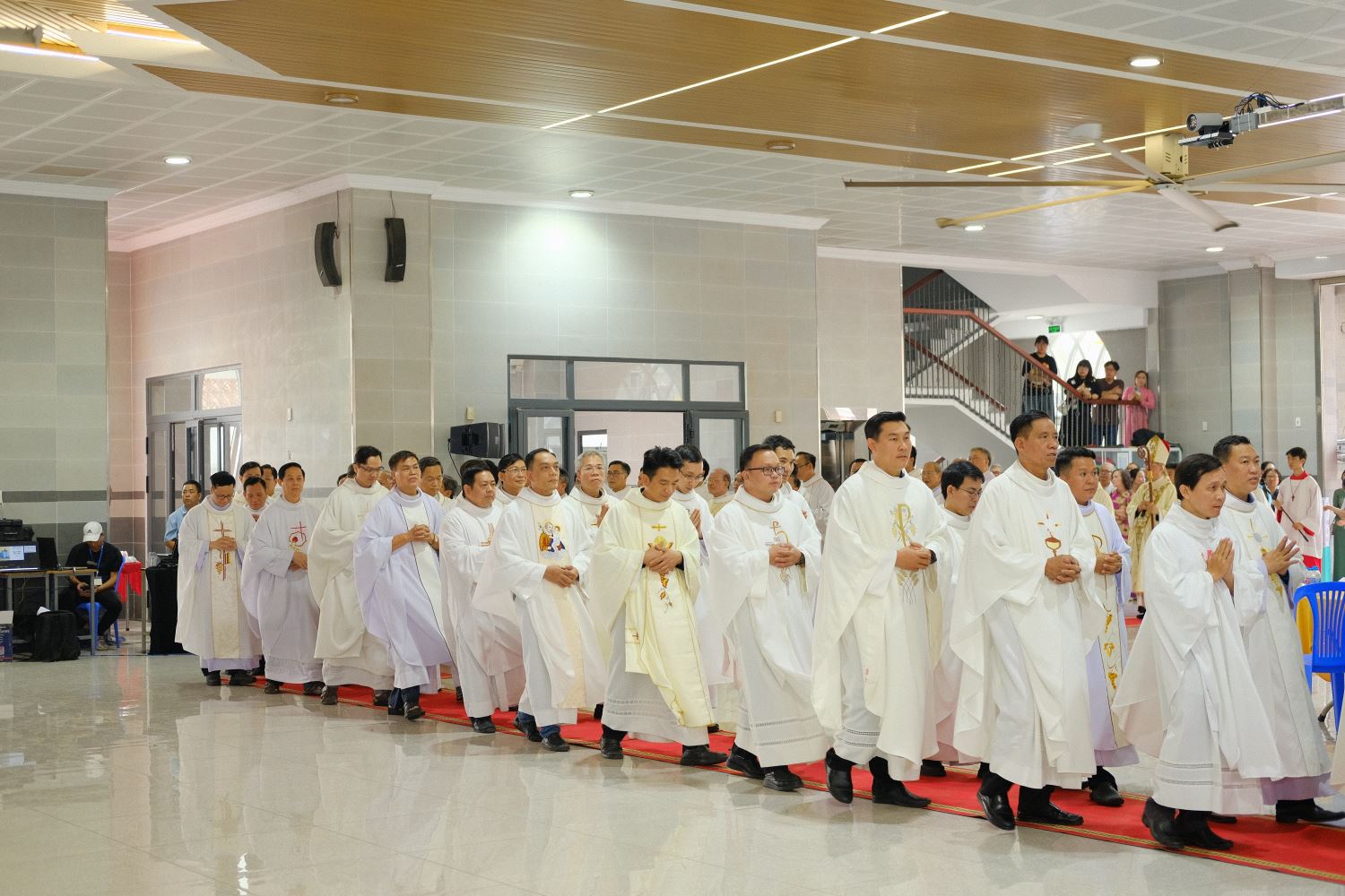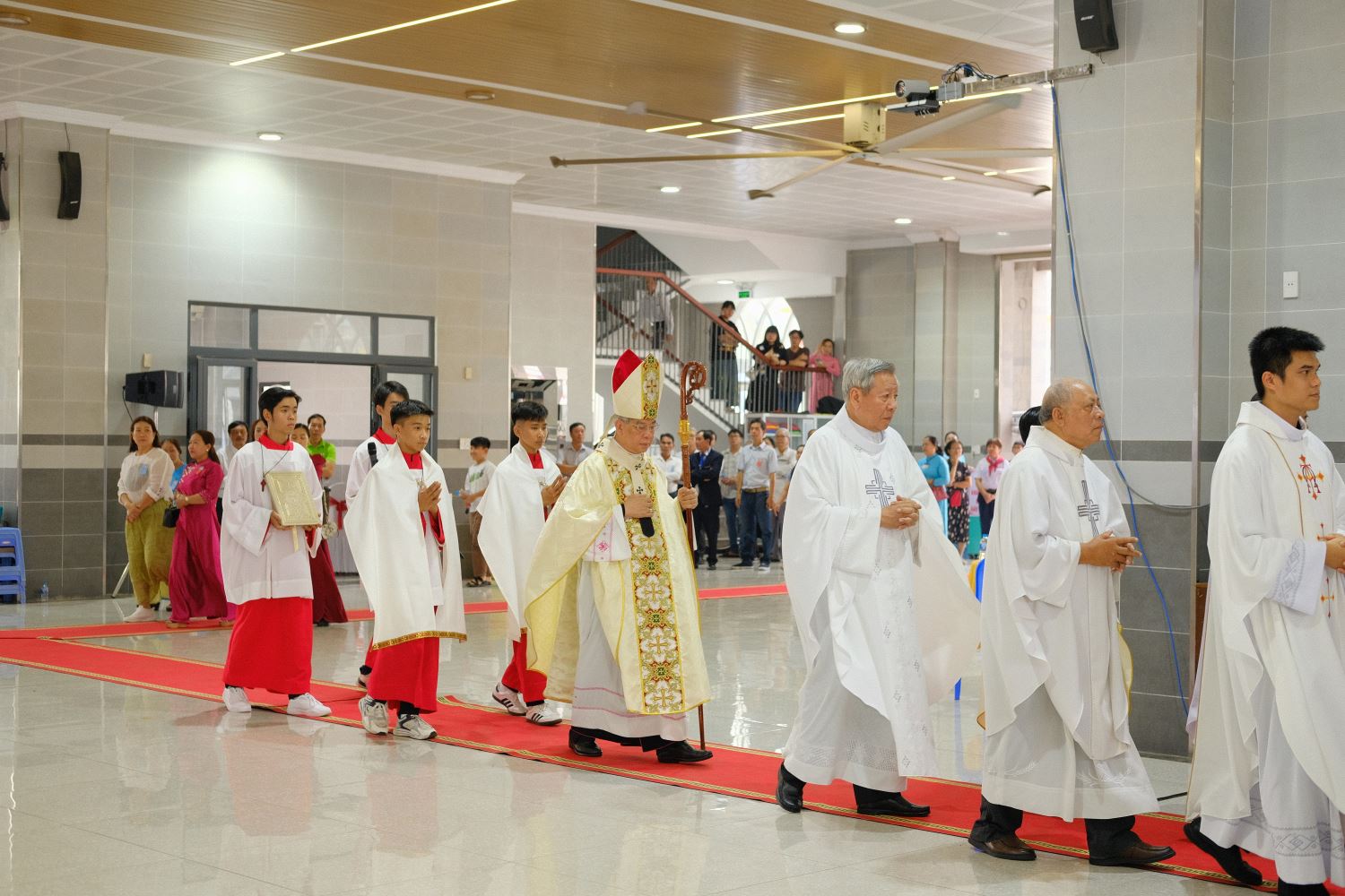 Thánh lễ khởi sự với đoàn rước từ cuối nhà thờ tiến vào cung thánh.