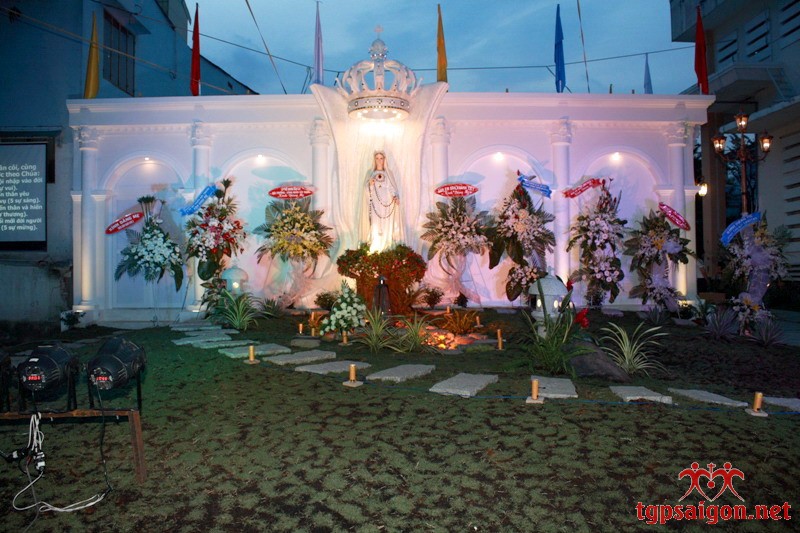 Cha chánh xứ cho biết, đây là bức tượng Đức Mẹ Fatima đã có từ lâu đời của giáo xứ, đến nay được tu bổ lại để Mẹ hiện diện với đàn con trong khuôn viên nhà xứ, hầu an ủi, chở che những ai chạy đến cùng Mẹ.