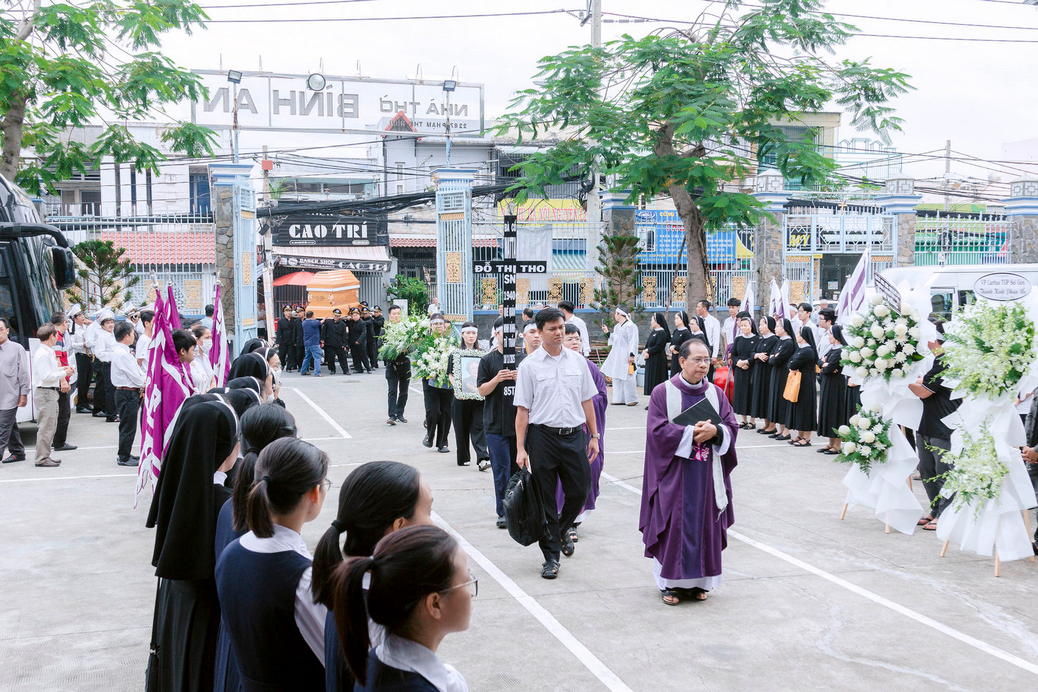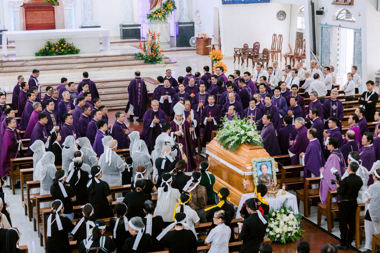 Hiệp dâng Thánh lễ có các sơ bề trên và rất đông quý tu sĩ nam nữ, Hội đồng Mục vụ giáo xứ Bình An và các giáo xứ có liên hệ với gia đình tang quyến cùng thân quyến bà cố Matta và cộng đoàn giáo xứ Bình An.