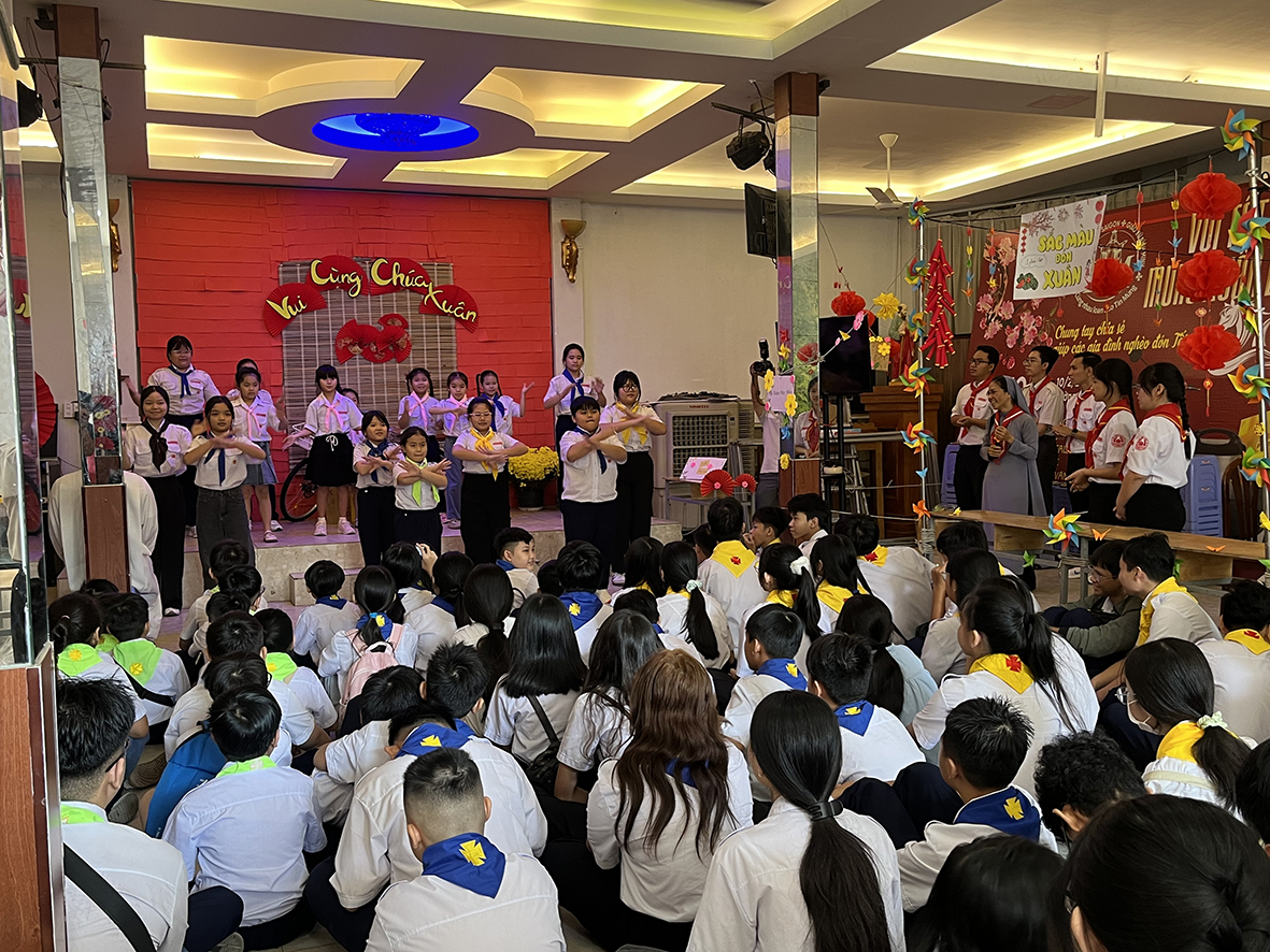 Sau Thánh lễ, các nữ tu phụ trách cùng các anh chị Huynh trưởng - Giáo lý viên và các em TNTT đã có những lời chúc Xuân và bài múa “Tết nhà mình, Xuân ơi ở lại chơi” thật dễ thương, tràn đầy yêu mến, kính dâng lên linh mục Gioan Baotixita, người luôn yêu thương, chăm sóc và kiên nhẫn đồng hành cùng cộng đoàn, cách riêng là gia đình giáo lý TNTT của giáo xứ.