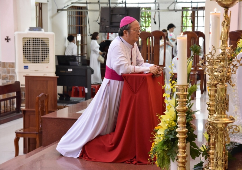 Đồng tế với ngài có Đức tân Giám mục phụ tá Sài Gòn - Louis Nguyễn Anh Tuấn, linh mục Phó hạt trưởng hạt Tân Sơn Nhì Giuse Lê Hoàng, linh mục nhạc sĩ Kim Long, linh mục Trưởng ban Truyền thông, linh mục phó xứ Martin Đỗ Đức Chính, tân linh mục phó xứ Giuse Nguyễn Cảnh Thịnh cùng hơn 100 linh mục; thầy phó tế Giuse Nguyễn Thành Công giúp lễ.