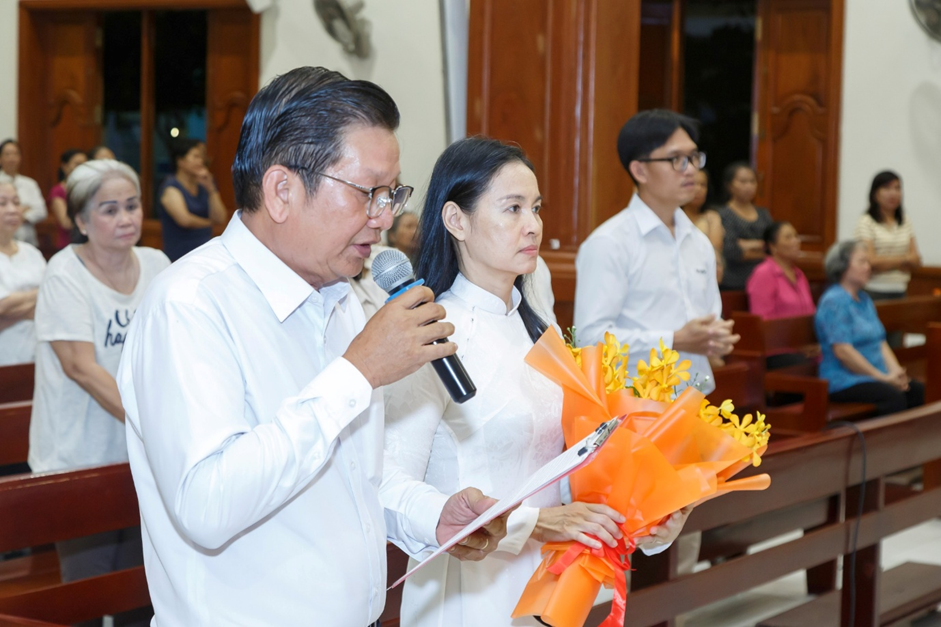 Sau phần Chầu Thánh Thể, ông Chủ tịch Hội đồng Mục vụ thay mặt cộng đoàn giáo xứ bày tỏ lòng tri ân sâu sắc vì hơn một năm Cha Phanxicô Assisi đã đồng hành và phục vụ giáo xứ. Những hành động, lời nói, sự nhiệt huyết, kiên nhẫn và tấm lòng mục tử chân thành của Cha đã giúp cộng đoàn giáo xứ vững vàng trong đức tin.