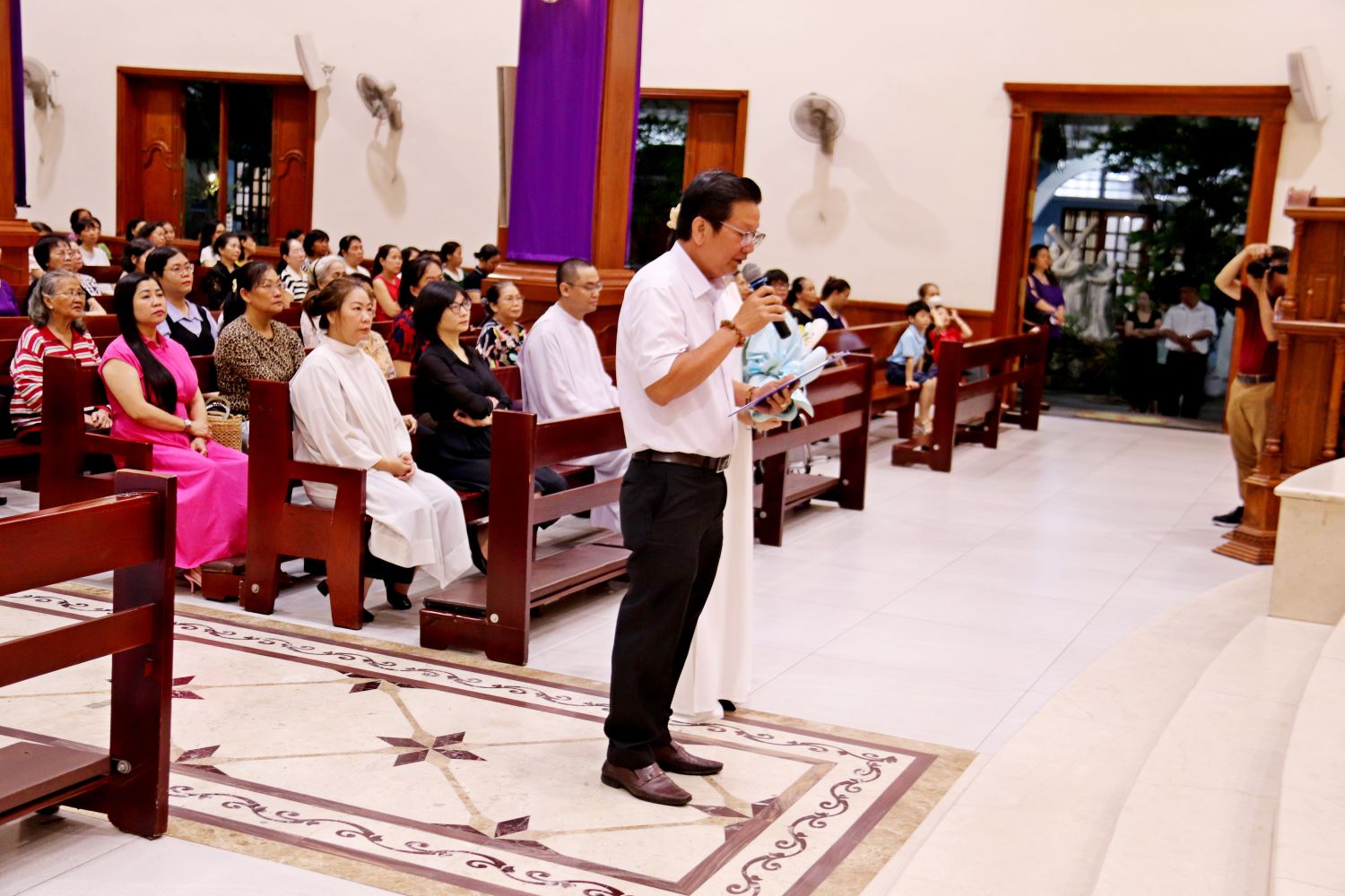 Trước khi bước vào chương trình, Linh mục chánh xứ Giuse Lê Ngọc Đa đã giới thiệu Linh mục Giuse Phạm Quốc Văn với cộng đoàn và mời gọi các bạn trẻ sốt sắng tham dự để canh tân đời sống đức tin trong Mùa Chay.