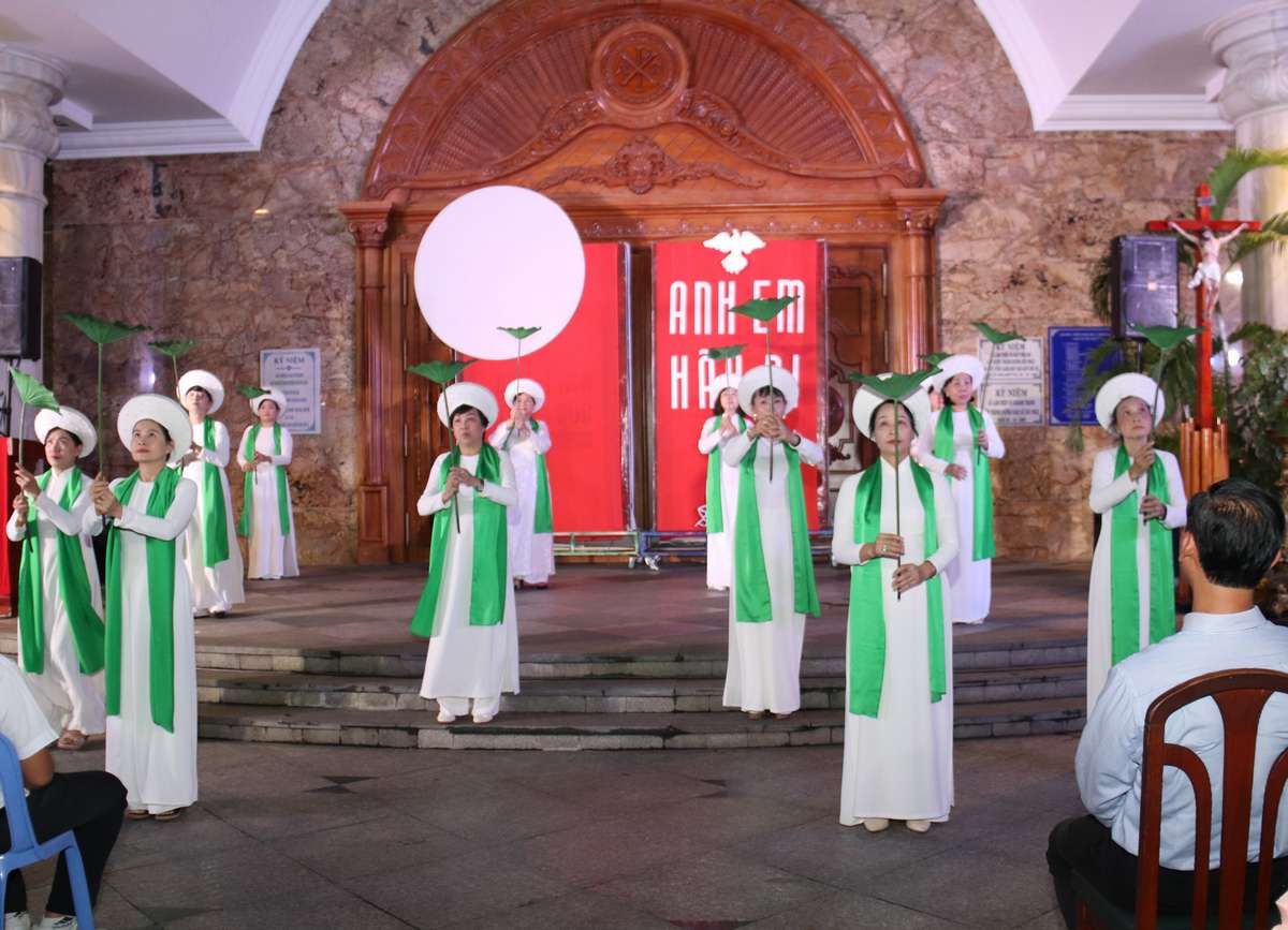 Sau tiết mục múa dâng hoa: “Mẹ là bóng mát” của hội các Bà mẹ công giáo.