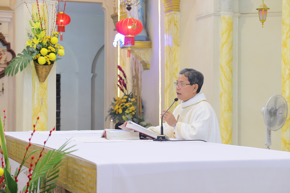 Linh mục Chánh xứ Gabriel Trịnh Công Chánh đã nhấn mạnh câu Lời Chúa trên trong bài giảng lễ Giao Thừa lúc 20g ngày 9/2/2024 tại nhà thờ Chợ Quán.