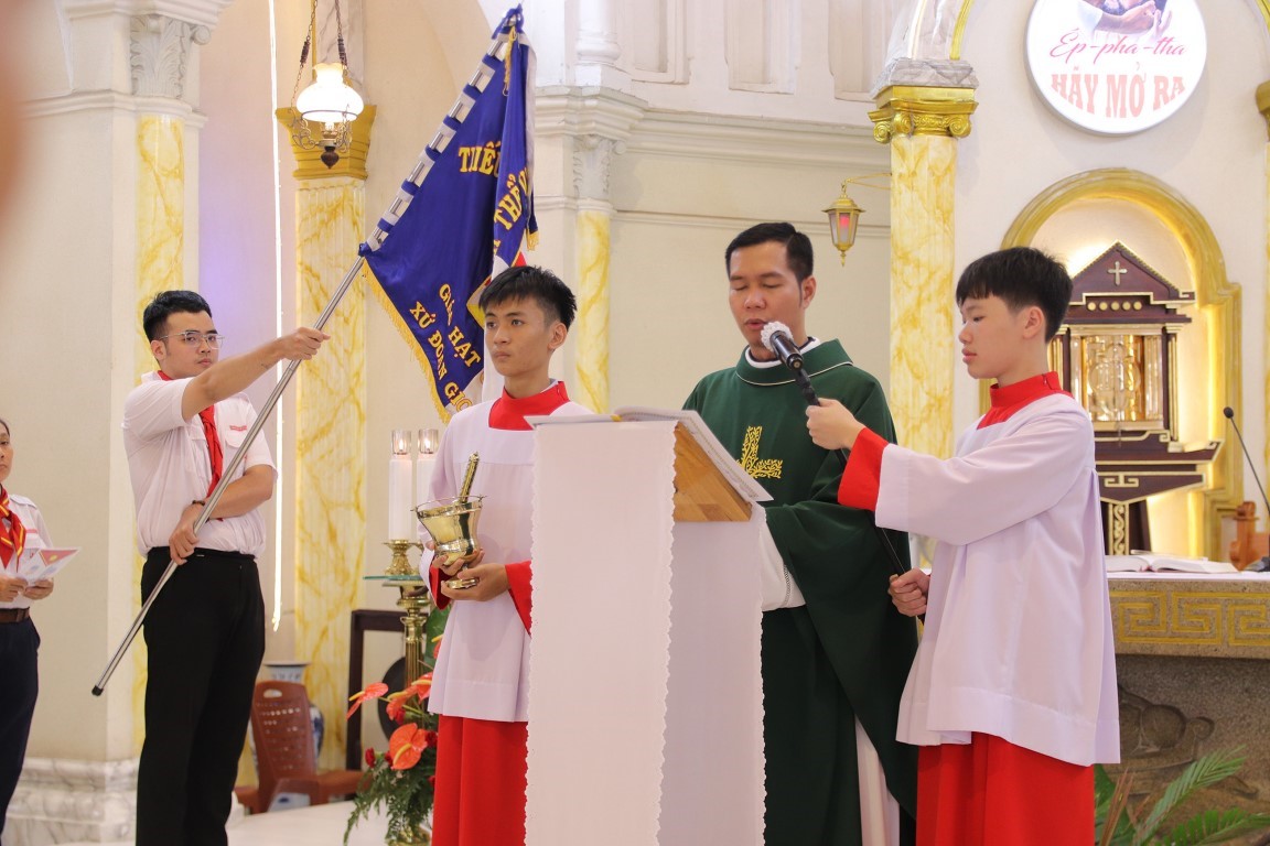 Hiệp dâng Thánh lễ, bên cạnh các em thiếu nhi đến từ các lớp giáo lý, còn có quý Dì, quý chức trong Ban thường vụ Hội đồng Mục vụ giáo xứ, phụ huynh, các Trợ tá cùng các anh chị Huynh trưởng - Giáo lý viên.