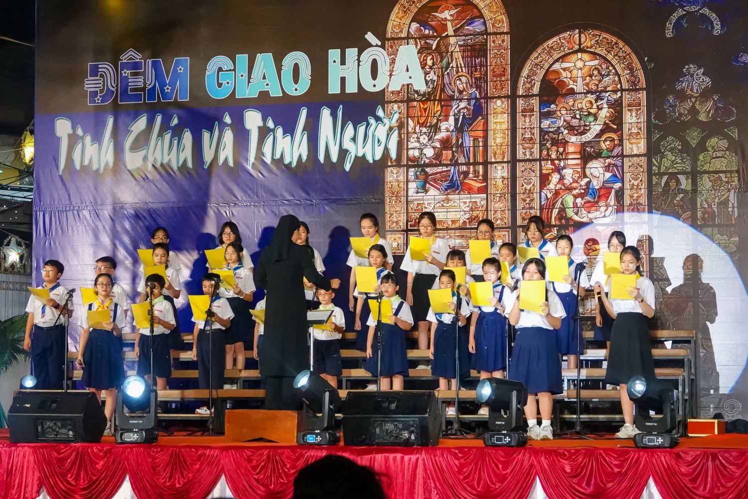 Đó cũng chính là chủ đề đêm Thánh ca: ĐÊM GIAO HOÀ: TÌNH CHÚA & TÌNH NGƯỜI được diễn ra lúc 19g ngày 22-12-2022 tại giáo xứ Gia Định, giáo hạt Gia Định. Đêm Thánh ca quy tụ tất cả các ca đoàn trong giáo xứ tham gia dưới sự chỉ đạo của linh mục (Lm) Phó xứ Phêrô Nguyễn Đức Trọng. Hiện diện trong đêm Thánh nhạc có quý tu sĩ, HĐMVGX, các đoàn thể và đông đảo giáo dân đến tham dự.