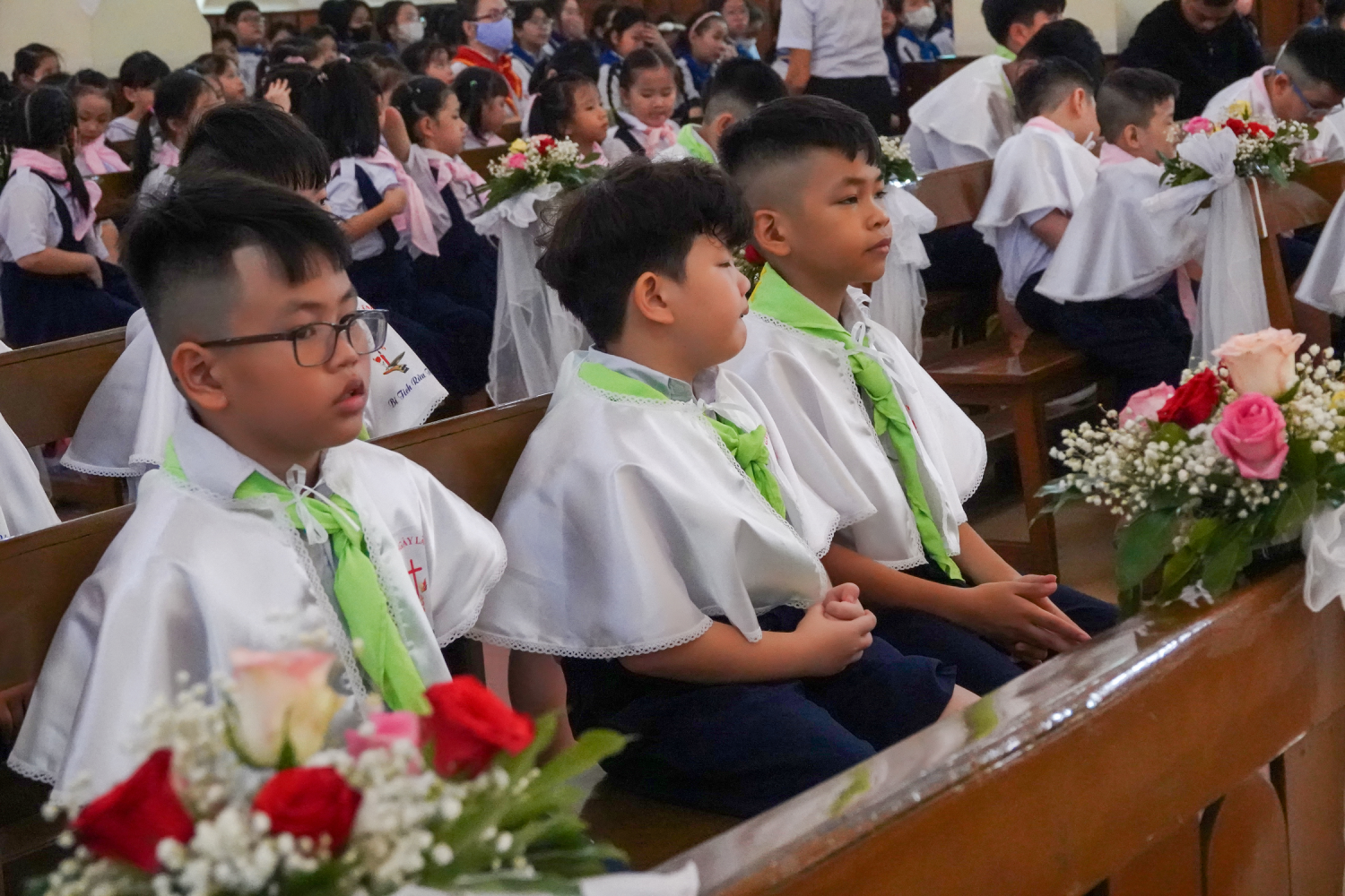 Hôm nay, giáo xứ cũng rất vui mừng vì có 27 em đang học Giáo lý lãnh nhận Bí tích Rửa Tội, trong đó có 2 em chuẩn bị được Rước lễ lần đầu cùng với các bạn khác vào ngày 02/06/2024.
