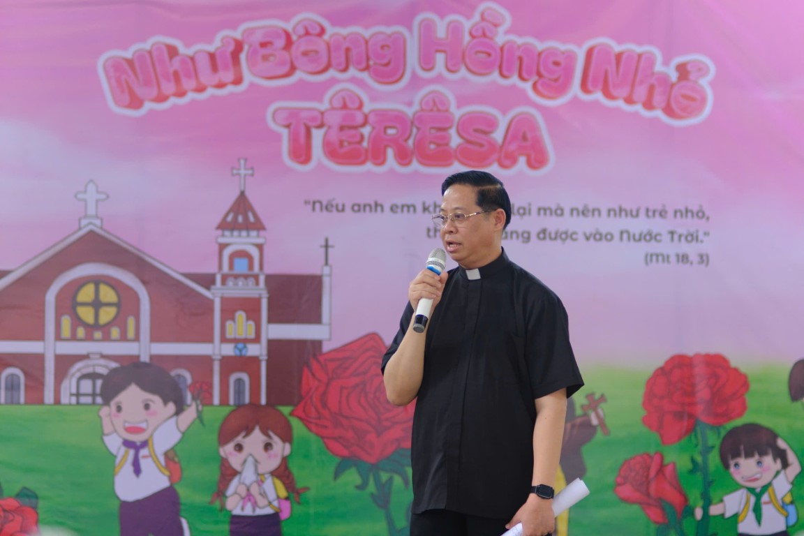 Cha chánh xứ chúc các em thiếu nhi một năm học giáo lý mới vui tươi, chăm ngoan học hỏi và sống Lời Chúa, tham dự thánh lễ Chúa nhật, ăn mặc lịch sự khi đến với Chúa, giữ vệ sinh chung và bỏ rác vào nơi quy định.