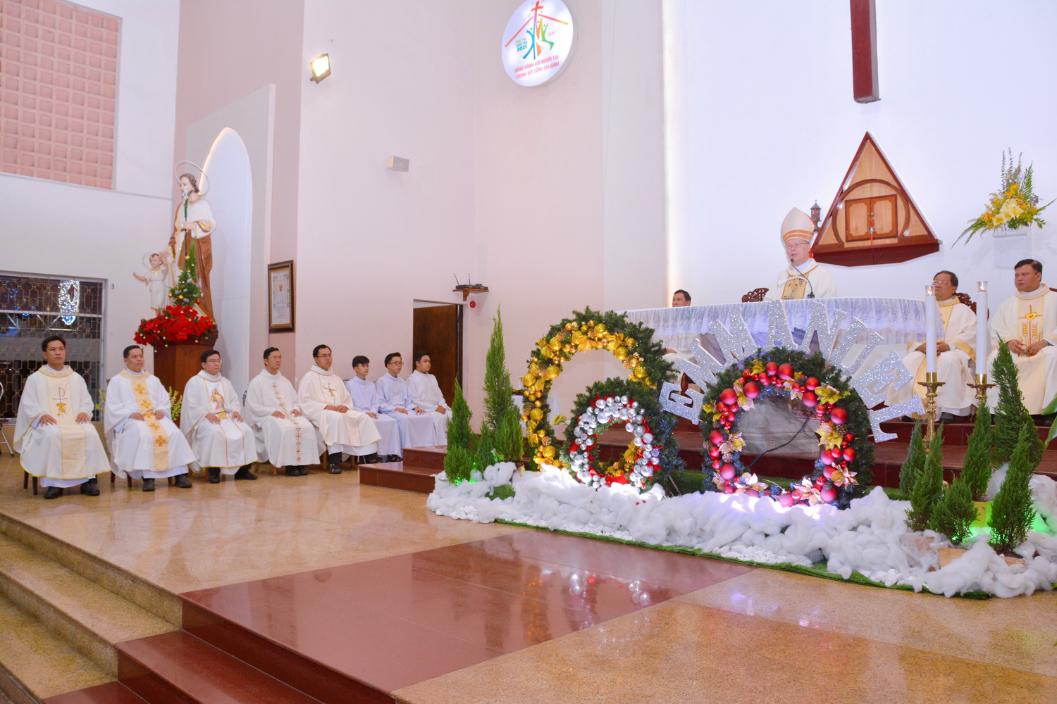 Đồng tế với ngài có linh mục (Lm) chánh xứ Hà Đông - G.B Vũ Mạnh Hùng, Lm phó xứ Hà Đông - Gioan Bosco Phạm Khôi Nguyên, Lm chánh xứ Bình Thái - Giuse Phạm Quốc Tuấn, Lm Anphongsô Vũ Đức Trung O.P và 5 linh mục thuộc trụ sở Tổng giáo phận Huế tại Sài Gòn.