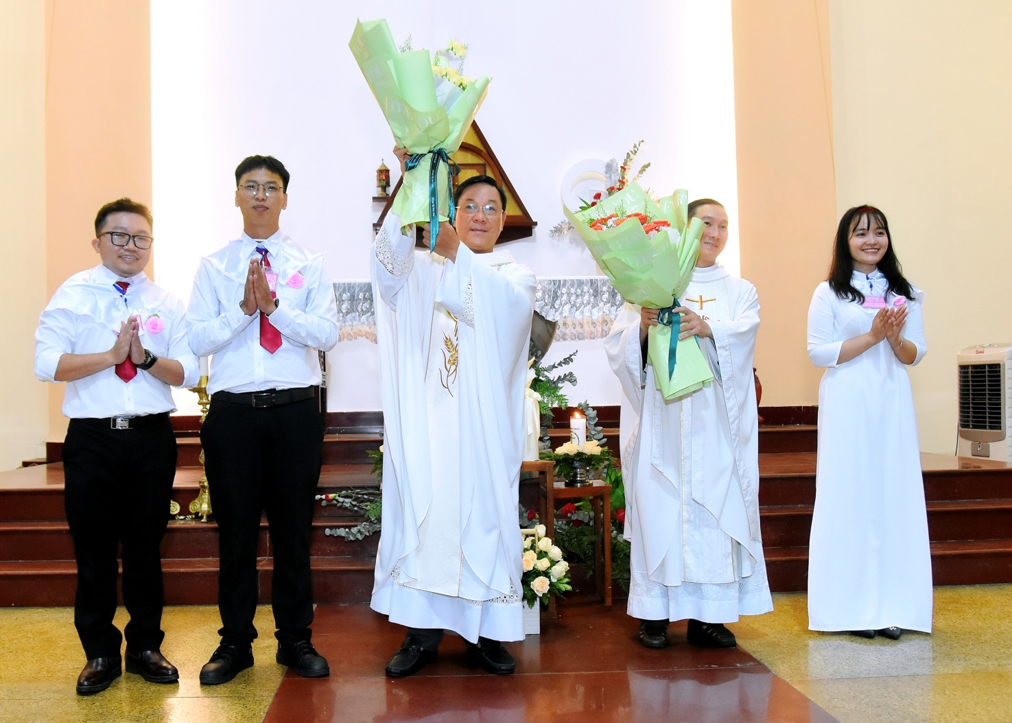 Sau lời nguyện hiệp lễ, một em đại diện cho lớp giáo lý Dự tòng đã có lời cảm ơn và dâng lên các linh mục những bó hoa tươi thắm.