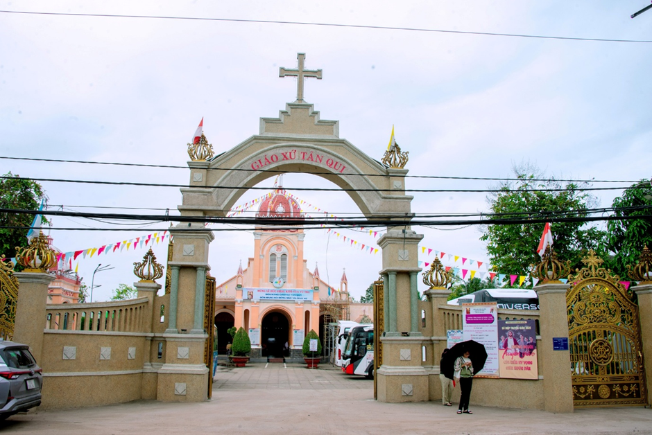 Đến nơi, đoàn được giáo xứ Tân Quy đón tiếp trong bầu khí thân tình, trang trọng và đậm tinh thần Năm Thánh. Tại nhà thờ, cộng đoàn sốt sắng lần chuỗi Mân Côi, dâng lên Đức Mẹ tâm tình tạ ơn và cầu nguyện.