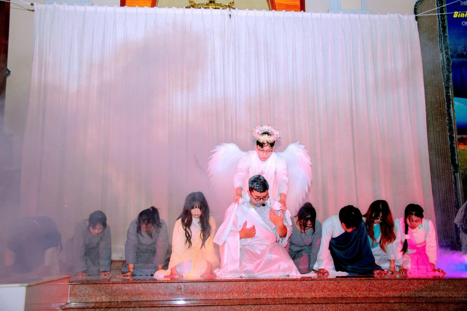 Hình ảnh các mục đồng, các thiên thần, Đức Maria, thánh Giuse và các đạo sĩ phương Đông lần lượt xuất hiện trong không gian thánh đường, không chỉ như một vở diễn, nhưng như lời chứng sống động cho mầu nhiệm Tình Yêu Thiên Chúa dành cho con người. Tiếp nối là cảnh bạo quyền truy bắt và sát hại các trẻ sơ sinh, làm nổi bật sự đối nghịch giữa quyền lực trần gian và kế hoạch cứu độ của Thiên Chúa. Hoạt cảnh khép lại bằng hình ảnh Đức Maria và thánh Giuse đưa Hài Nhi trốn sang Ai Cập, trong khi các thiên thần cất cao lời ca ngợi khen Đấng Cứu Thế đã đến trần gian.