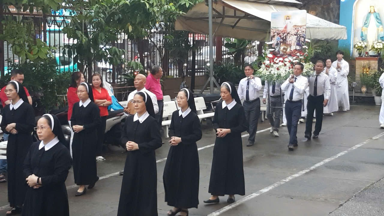 Chính trong dòng chảy ấy, vào lúc 17g00, cộng đoàn lại một lần nữa quy tụ đông đảo trước sân nhà thờ, để bước vào cuộc cung nghinh ảnh các Thánh Tử đạo Việt Nam - như một nhịp nối thiêng liêng giữa lịch sử cứu độ và đời sống hiện tại của giáo xứ. Lm Gioan B. Vũ Mạnh Hùng, chánh xứ Hòa Hưng, chia sẻ: “Chúng ta vui mừng vì ơn Chúa, chỉ có thể là ơn Chúa mới khiến các ngài vượt qua được những thử thách đau thương, chịu trăm ngàn thương khó vẫn vượt qua. Khi chúng ta mừng kính thánh tử đạo Việt Nam, chúng ta thấy được gương anh hùng của các ngài, nhất là ơn Chúa và ngày hôm nay ơn Chúa tiếp tục nâng đỡ chúng ta can đảm sống đức tin trong thời đại ngày hôm nay.”