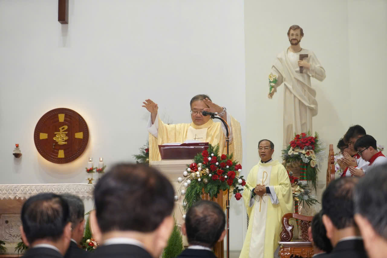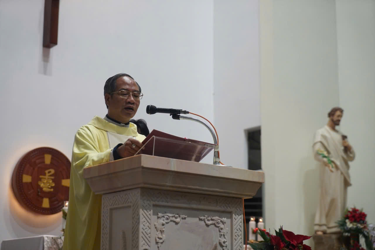 Nhân dịp này, cha chánh xứ đọc thư chúc mừng Giáng Sinh của Đức Tổng Giám mục, nguyện chúc cộng đoàn một mùa Giáng Sinh bình an, tràn đầy niềm vui và phúc lành của Chúa Hài Đồng. Cha cũng bày tỏ lời tri ân các cha, Hội đồng Mục vụ, các đoàn thể, các tu sĩ, ca đoàn, ban trang trí - phục vụ và các em thiếu nhi đã quảng đại hy sinh, góp phần làm nên một mùa Giáng Sinh sốt sắng và ấm áp yêu thương.