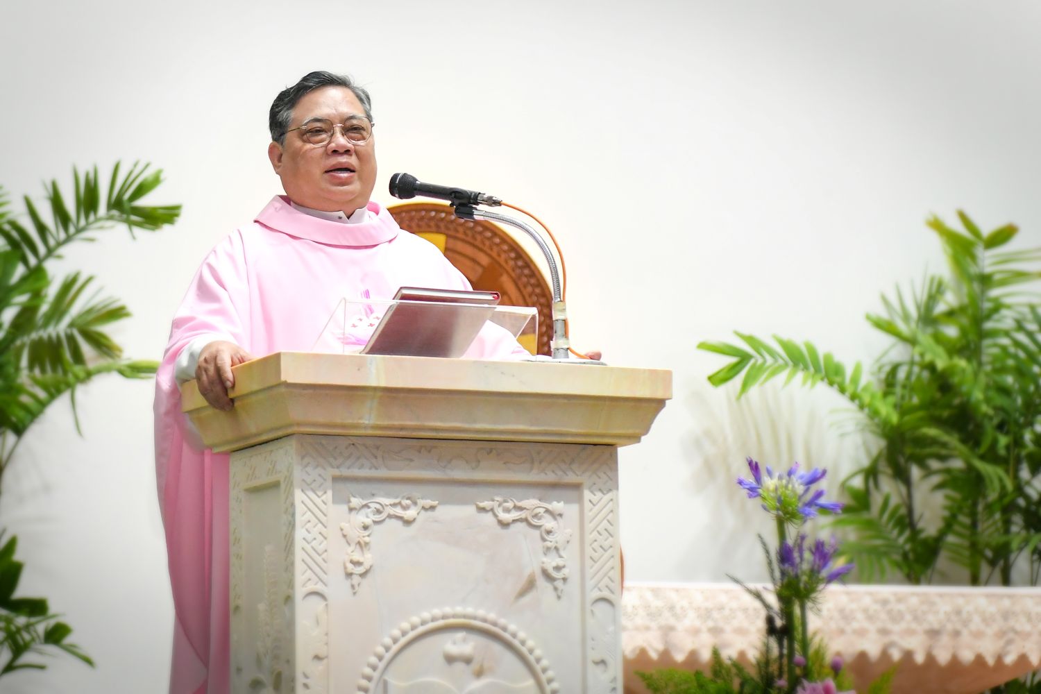 Trong bài giảng lễ, Lm Carolo Vũ Anh Quốc mời gọi cộng đoàn cùng tạ ơn Thiên Chúa vì những hồng ân đang tiếp nối trong đời sống Giáo hội và cách riêng tại giáo xứ Hòa Hưng. Niềm vui ấy được thể hiện qua màu áo hồng phụng vụ và đặc biệt là dịp kỷ niệm 34 năm hồng ân linh mục của cha sở, cùng với niềm vui mừng lễ hai cha cố trong những ngày vừa qua.
